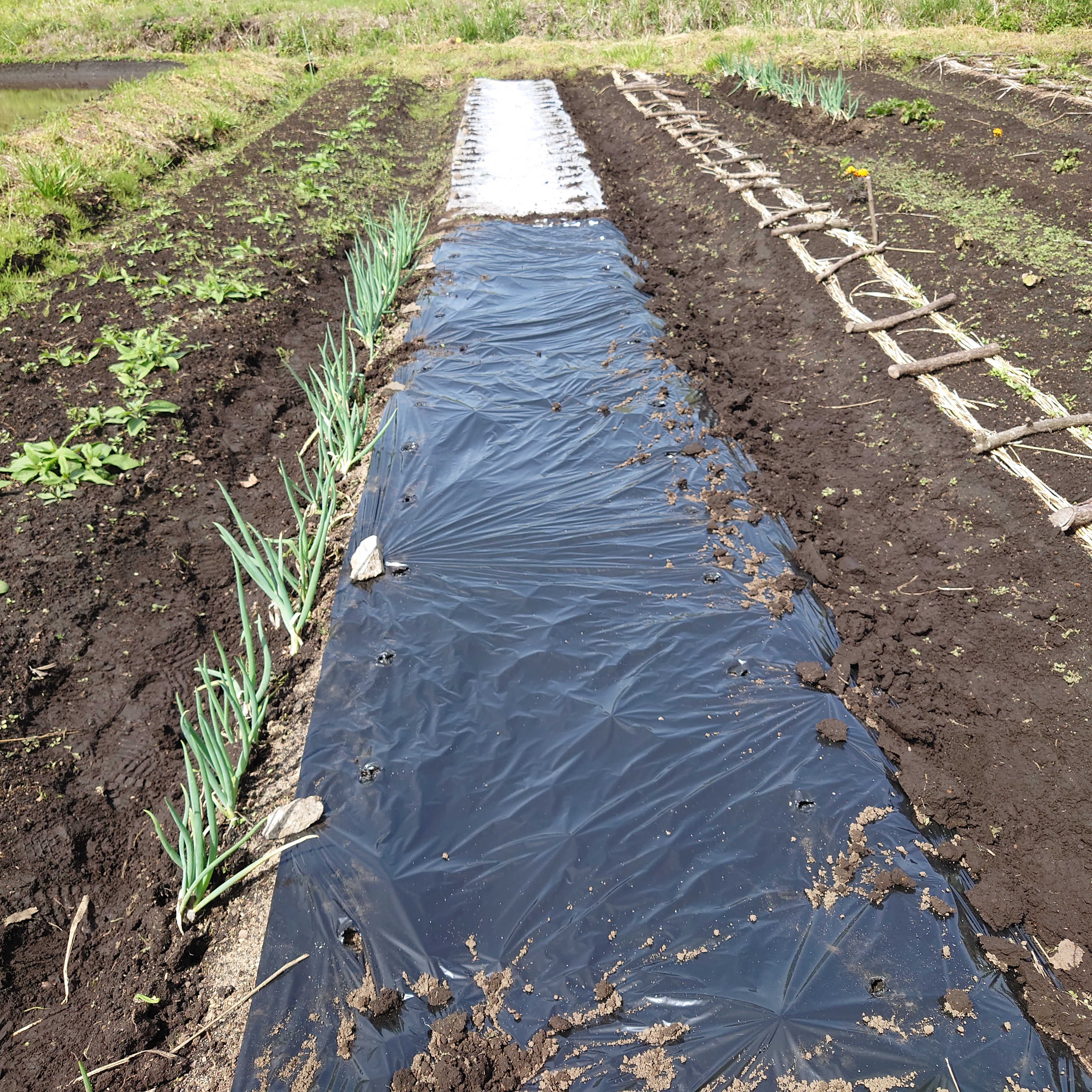 - 透明マルチを敷く。
