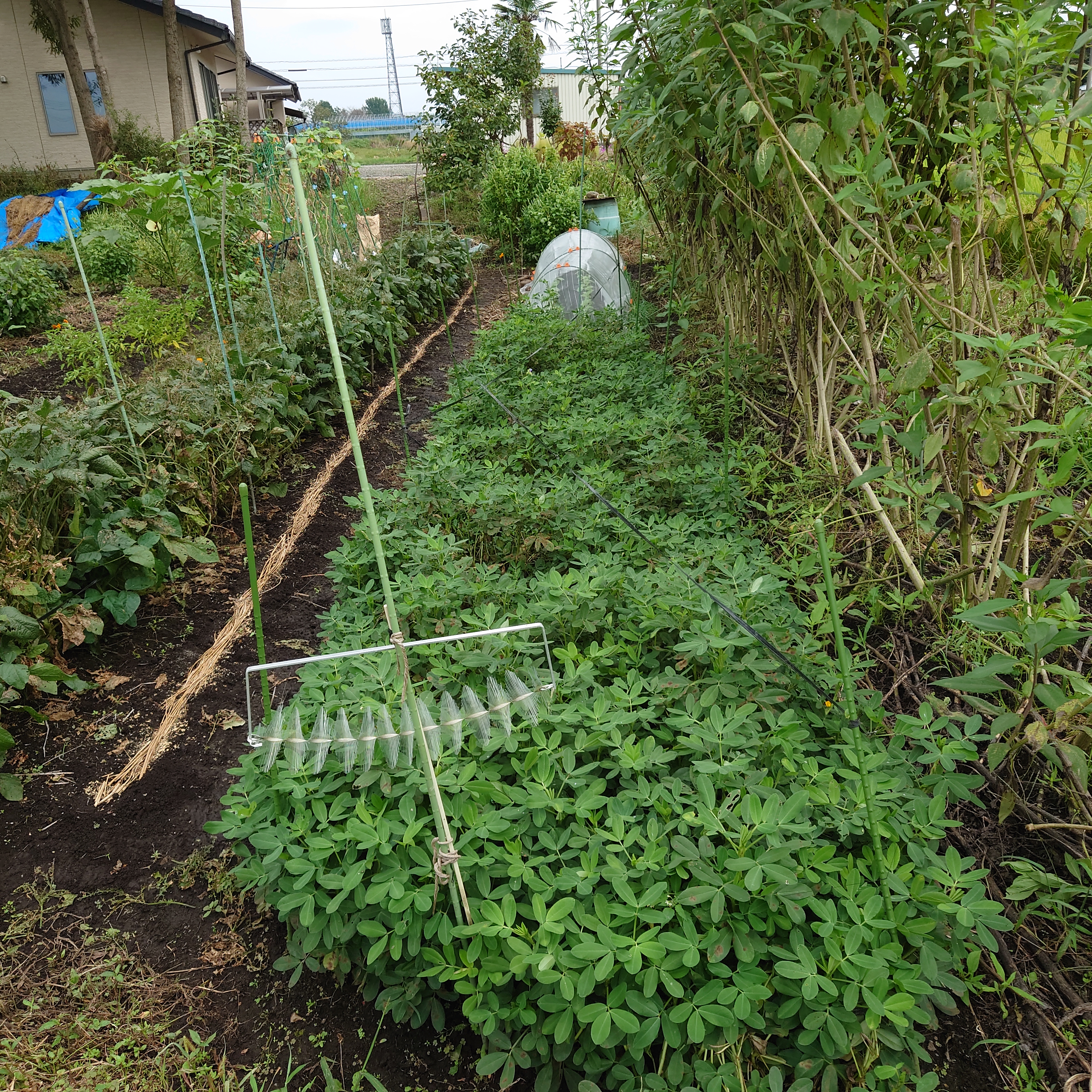 トウモロコシで功を奏したので、黒タコ糸を周囲に張り巡らせたとのこと。