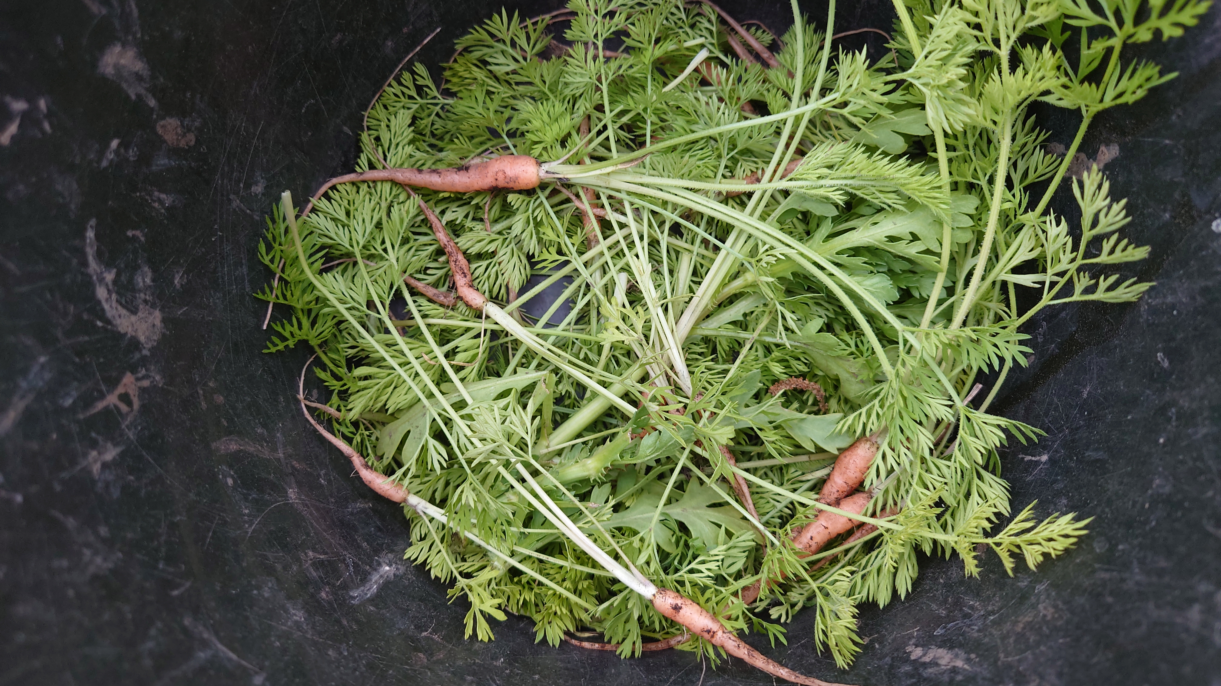 - 間引いたニンジンは、サラダ、天ぷら、スムージーにしました。^^