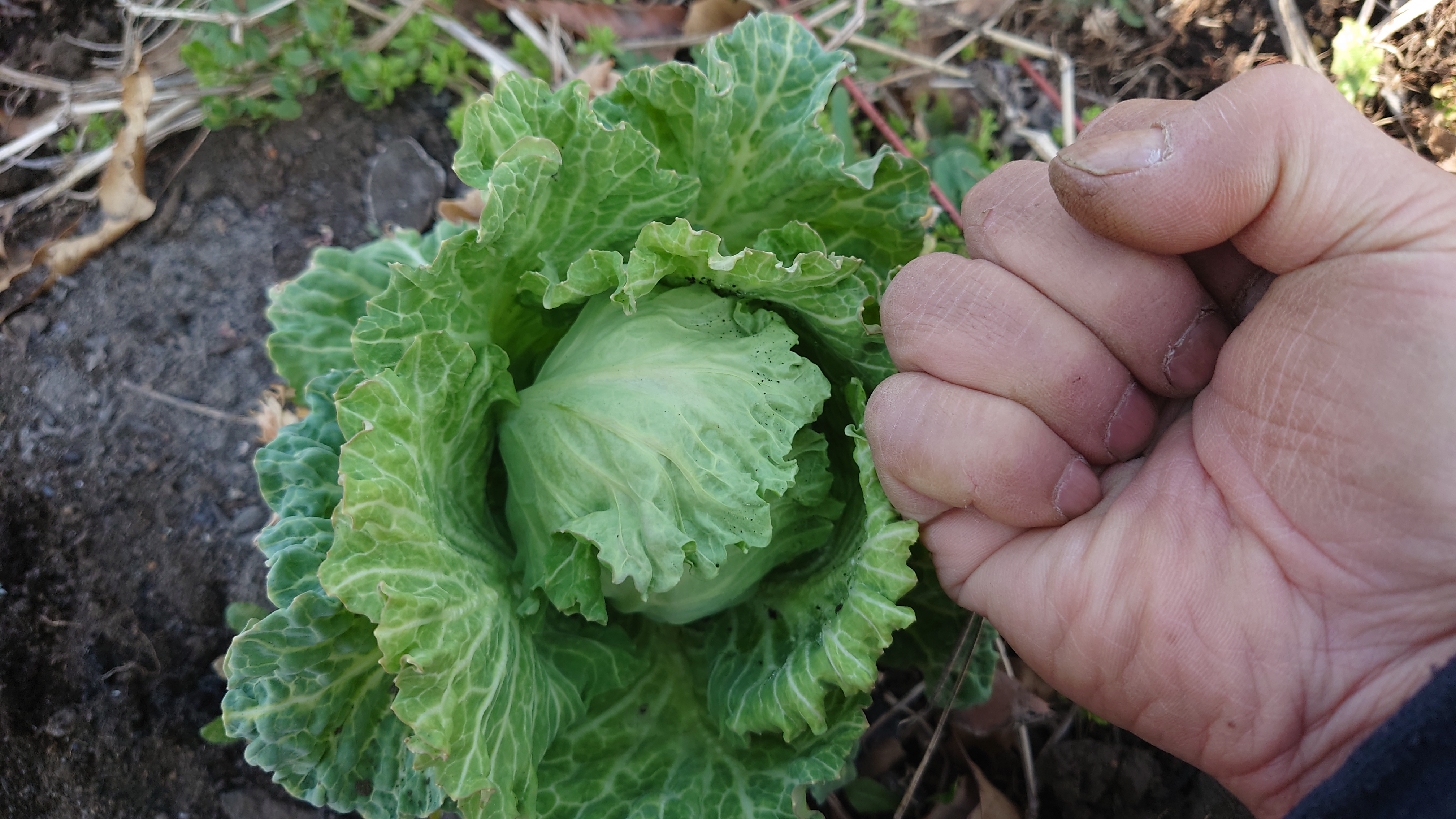 キャベツ- 霜の心配も無くなり、円形透明のカプセルを撤去。