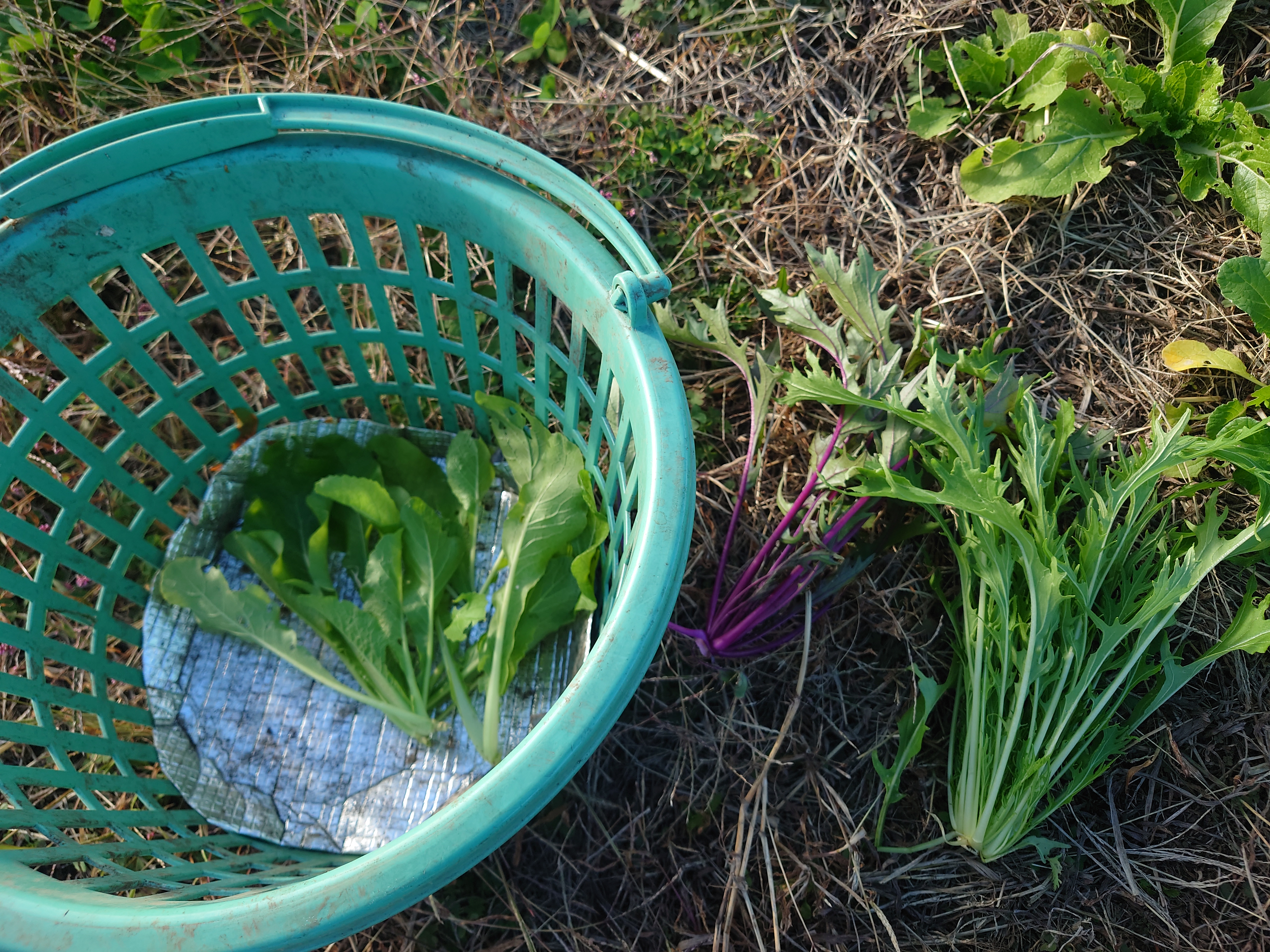 初収穫:紅法師、早生千筋京水菜1株ずつ |